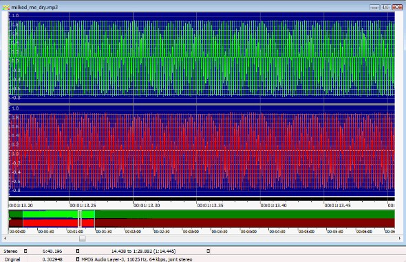 Audio-File "Milked me dry" dargestellt mit "Goldwave" |
